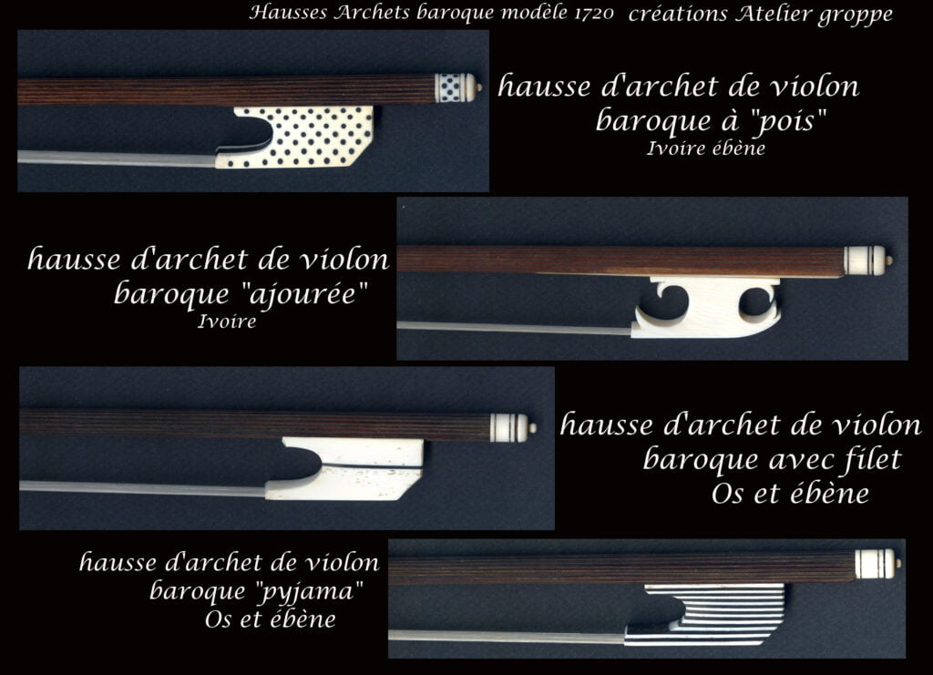 Tous mes archets sont conçus pour des professionnels, ce qui n’empêche pas les amateurs d’avoir envie ou besoin d’archets de qualité… Mes modèles proviennent de relevés dans les musées, les collections particulières ou auprès de particuliers. Les copies sont réalisées au plus près de l’original en essayant de trouver les bois les plus approchants… La plupart de mes modèles sont français ou italiens, que je fabrique depuis plus de 40 années et ont par conséquence fait leur preuve… Il reste que chaque baguette aura sa personnalité qui devra trouver son « alter ego »…